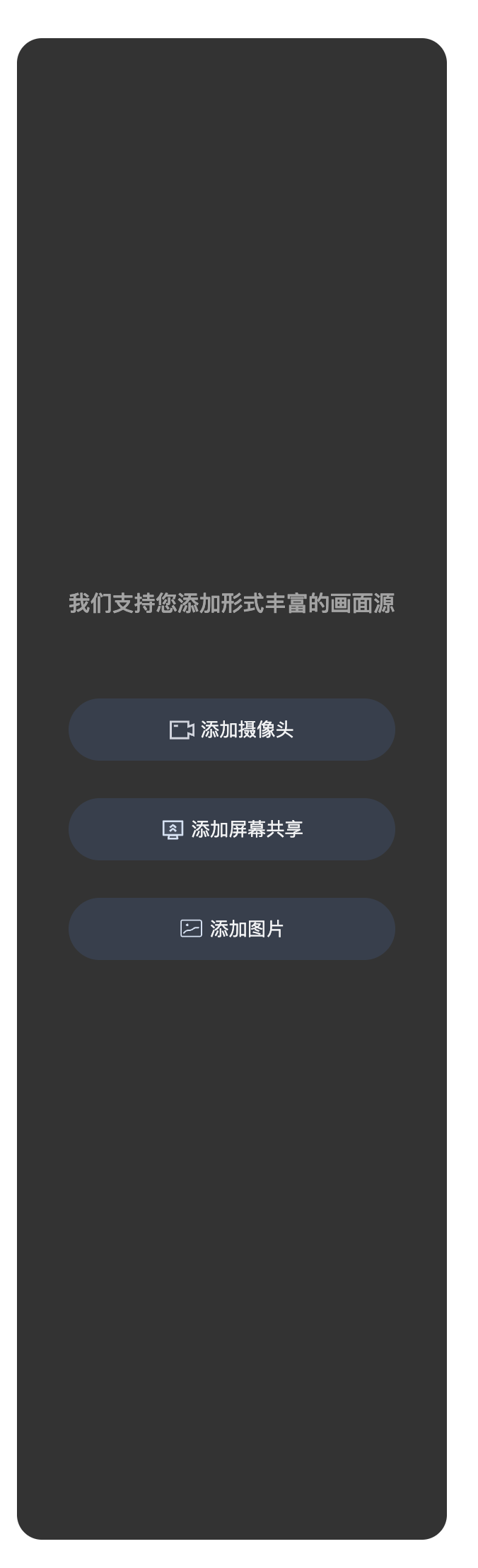 本文对媒体源配置面板(LiveScenePanel)进行了详细的介绍,您可以在已有项目中直接参考本文示例集成我们开发好的组件,也可以根据您的需求按照文档中的组件定制化部分对样式和布局进行深度的定制。