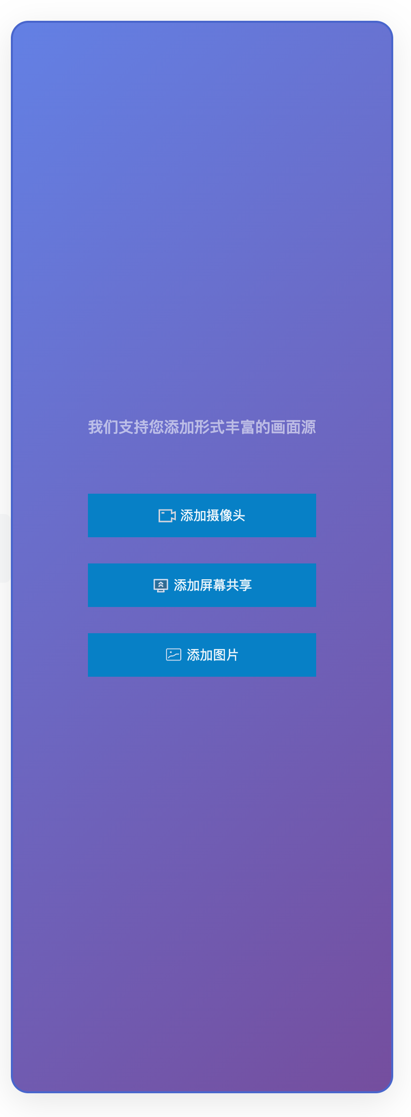 在您的项目中引入并使用媒体源配置面板,可直接复制如下代码示例至您的项目中展示媒体源配置面板。