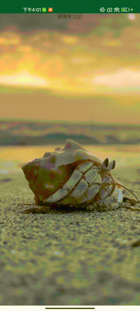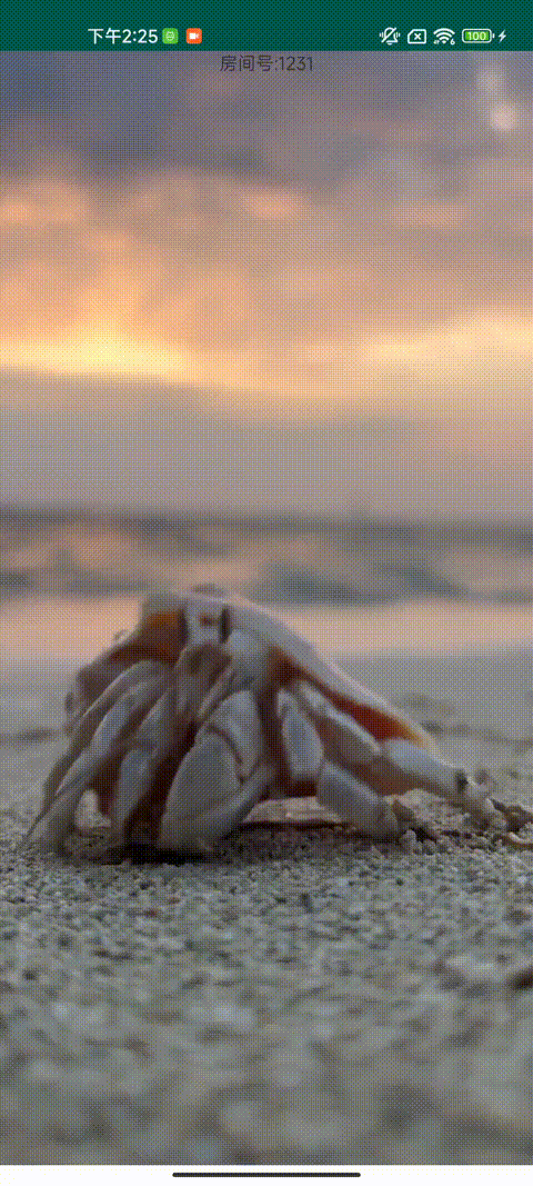 2. 从 A 页滑动到 B 页的过程中,此时可同时看到 A、B 页面在同时播放视频,听到房间1231的音频。