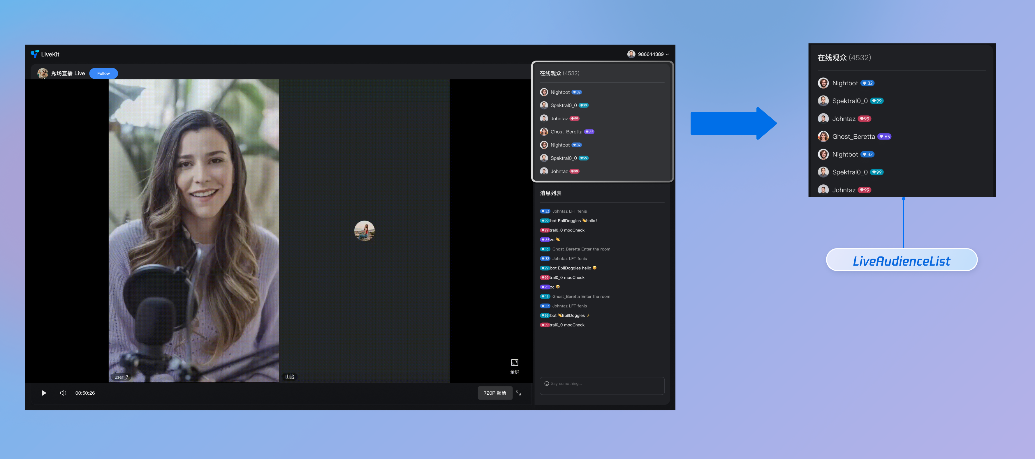您可参考我们在 Github 上提供的 LiveAudienceList 组件来查看完整实现。