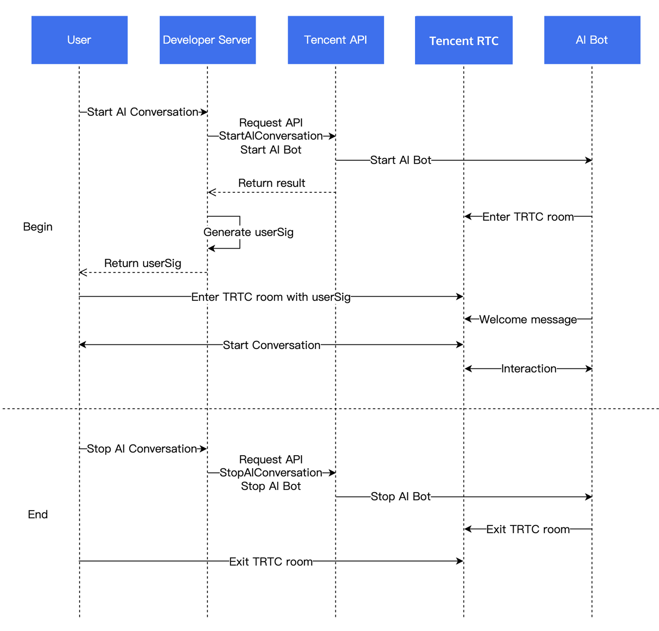 AI 实时对话 | 腾讯 AI 实时对话解决方案,支持客户灵活接入多家 AI 大模型服务,实现 AI 与用户之间的实时音视频互动,打造符合业务场景的 AI 实时对话能力。基于腾讯 RTC 全球低延迟传输,对话效果自然拟真,接入便捷,开箱即用。 |