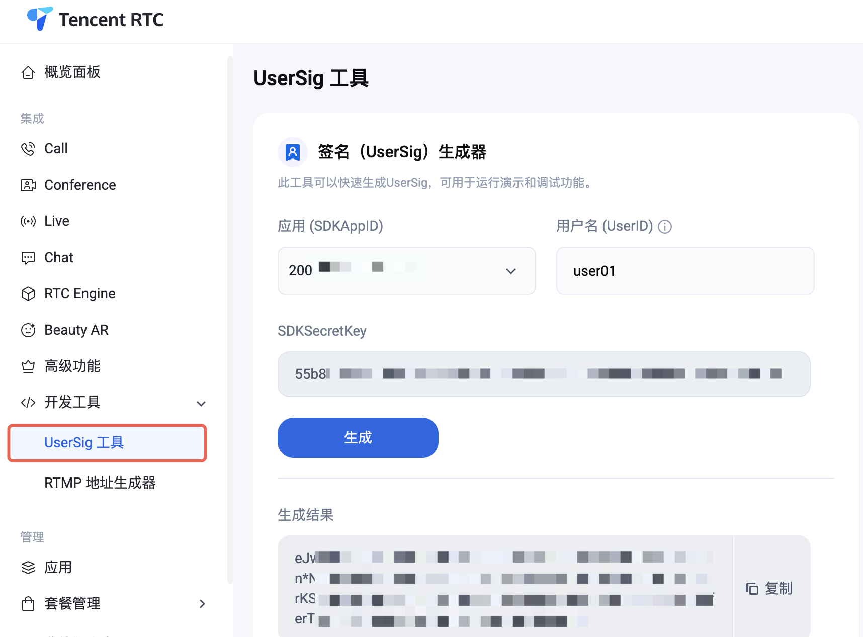SDKAppID:App 在控制台获取的 Chat 应用的 ID,为应用的唯一标识。