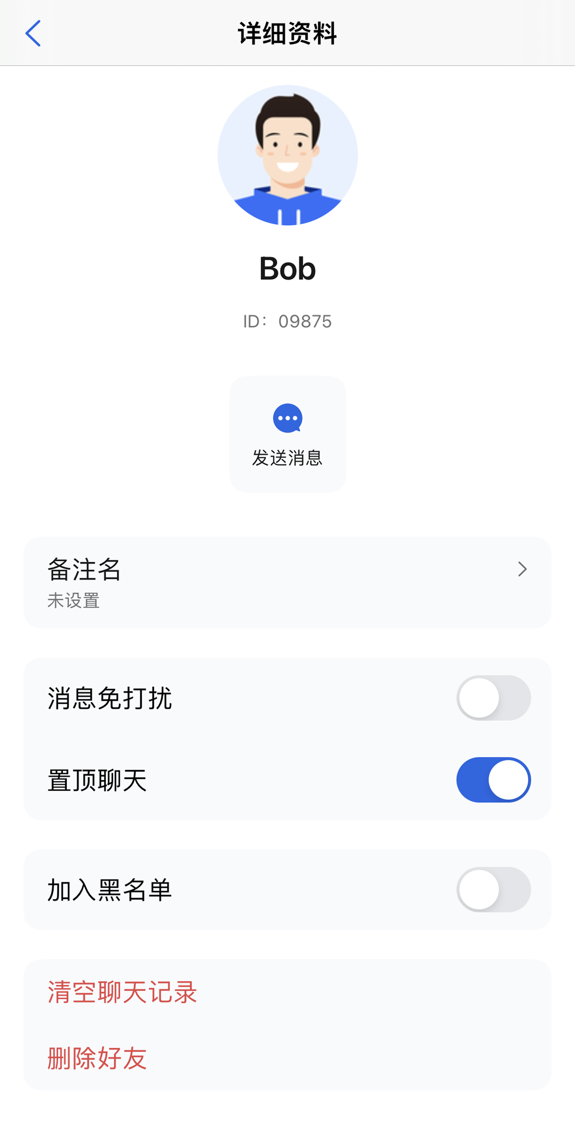 初始化 C2CChatSetting 即可直接展示单聊设置页面,示例代码如下: