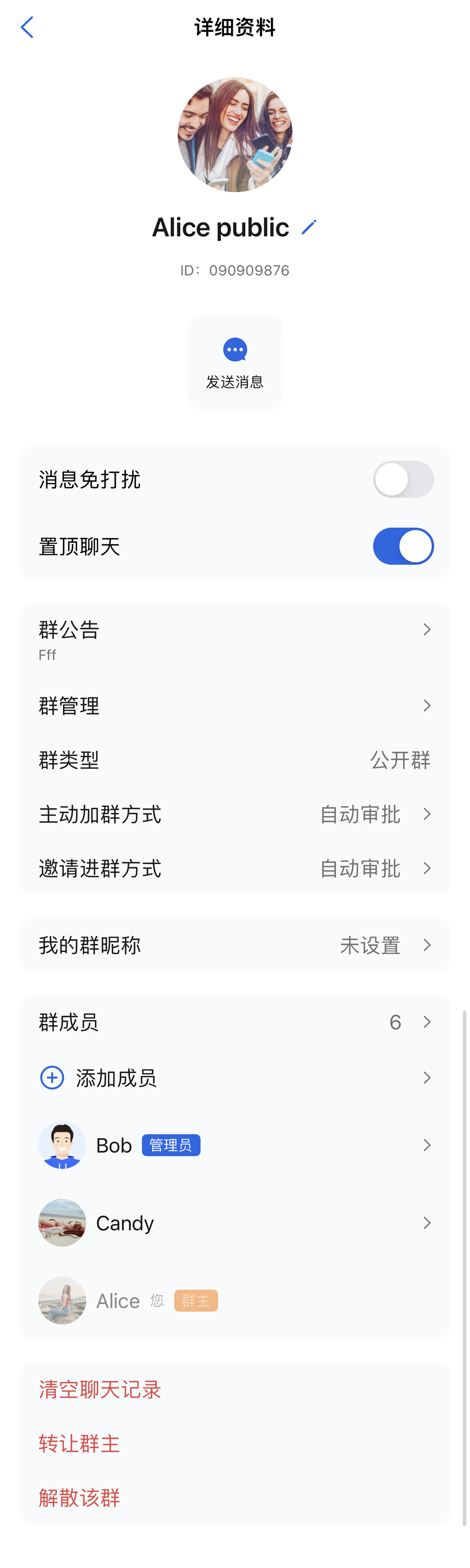 import AtomicXimport SwiftUIstruct GroupSettingView: View {let groupID: Stringvar body: some View {GroupChatSetting(groupID: groupID,onSendMessageClick: {// 处理发送消息点击事件},onGroupDelete: {// 处理删除、解散、退出群聊点击事件})}}