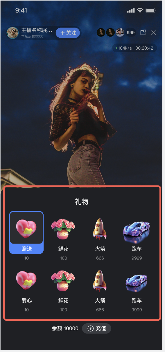 Live 提供常见的礼物相关能力和 UI 效果如下: