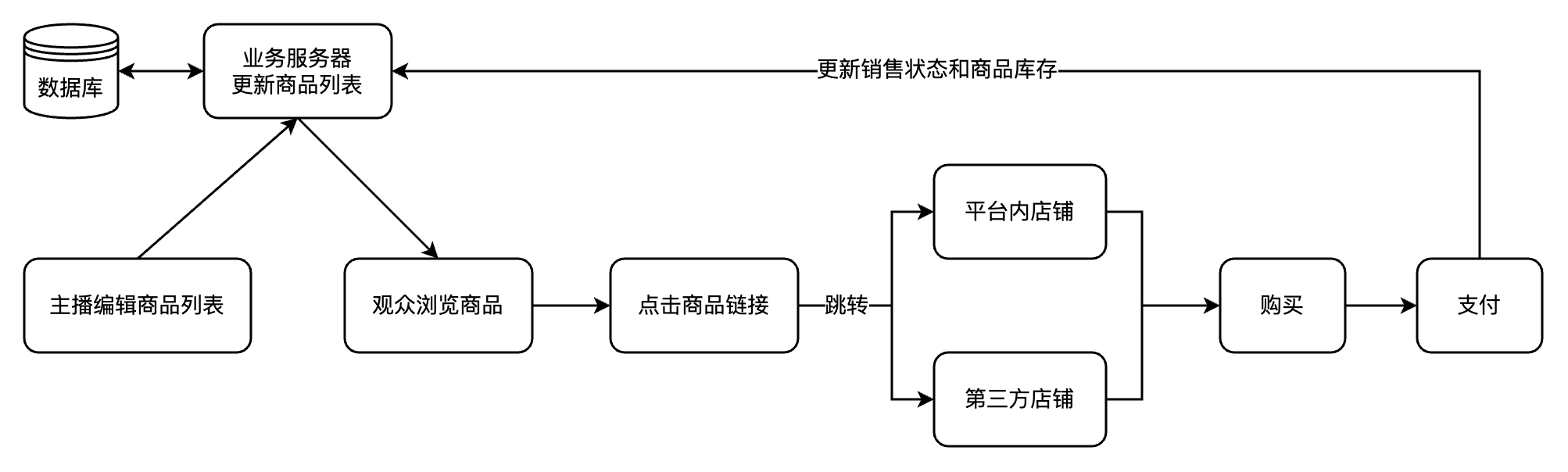 直播间内的观众完成商品挑选后,需要通过点击商品链接,跳转到具体的电商店铺进行订单的确认及支付。这里的电商店铺可以是平台内店铺,或是集成的第三方平台店铺。待用户支付完成后,还需要获取支付结果,以便更新商品的销售状态和库存信息等。