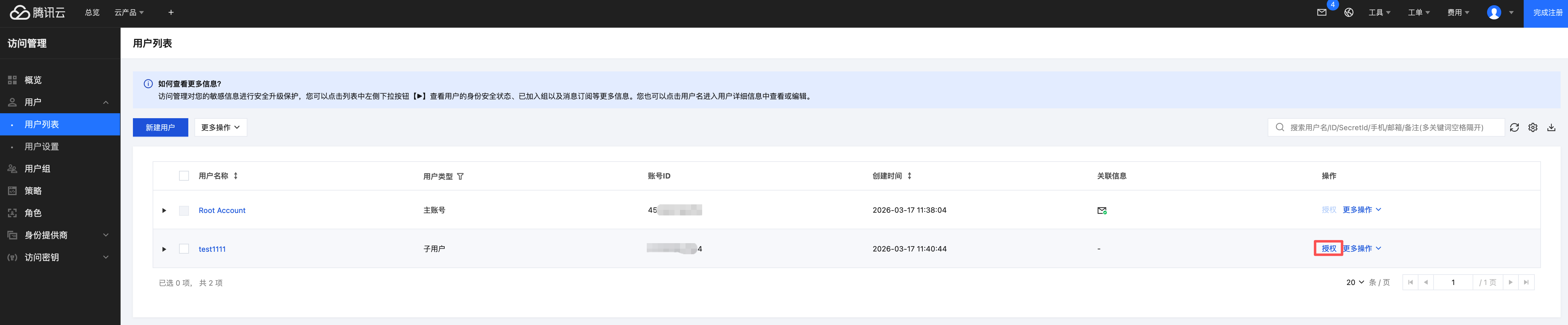 授予子账号操作控制台权限