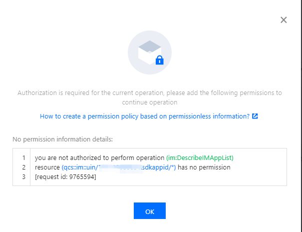子账号使用 TRTC 服务时,需要主账号授予访问 控制台 以及进行配置操作的权限,否则控制台应用列表将无法显示应用,如下图所示: