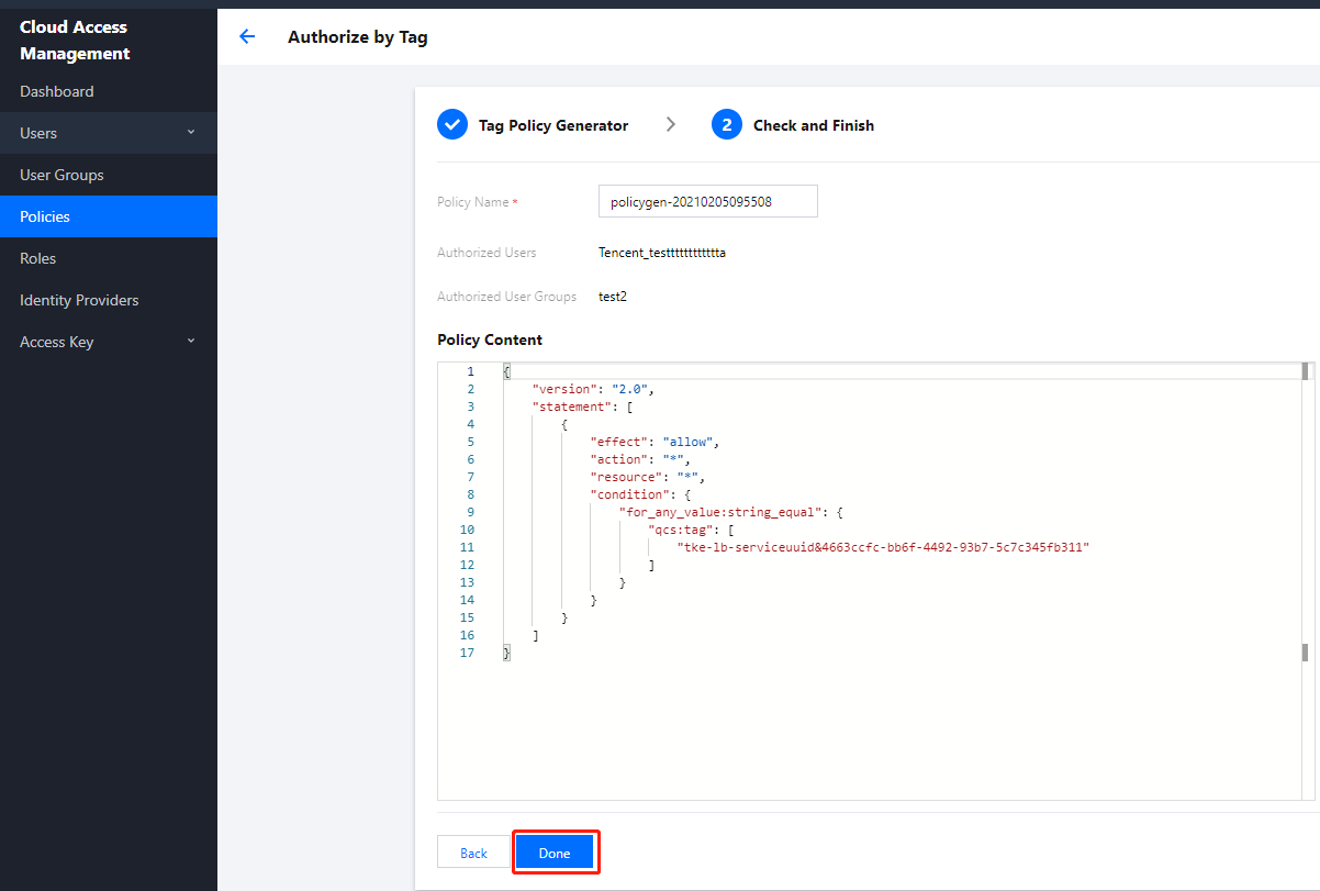 选择按标签授权,进入标签策略生成器。