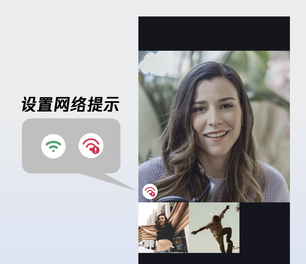 设置网络提示图标 | 支持根据实时网络质量,配置对应的网络状态提示图标。 | |