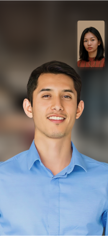 布局逻辑:呼叫等待时全屏显示己方画面。接通后全屏显示对方画面,己方画面以悬浮小窗展示。 交互特性:支持小窗拖拽移动,点击小窗可实现大小画面互换。 | 布局逻辑:所有成员画面呈网格状平铺排列成宫格模式布局,适用 2 人以上通话,支持点击放大画面功能。 交互特性:支持点击特定成员画面放大查看。 | 布局逻辑:1v1 场景固定显示对方画面,多人场景:采用当前发言者(Active Speaker) 策略,自动识别并全屏展示正在说话的用户。 交互特性:等待时显示自己的画面,接通后还会显示通话计时。 |