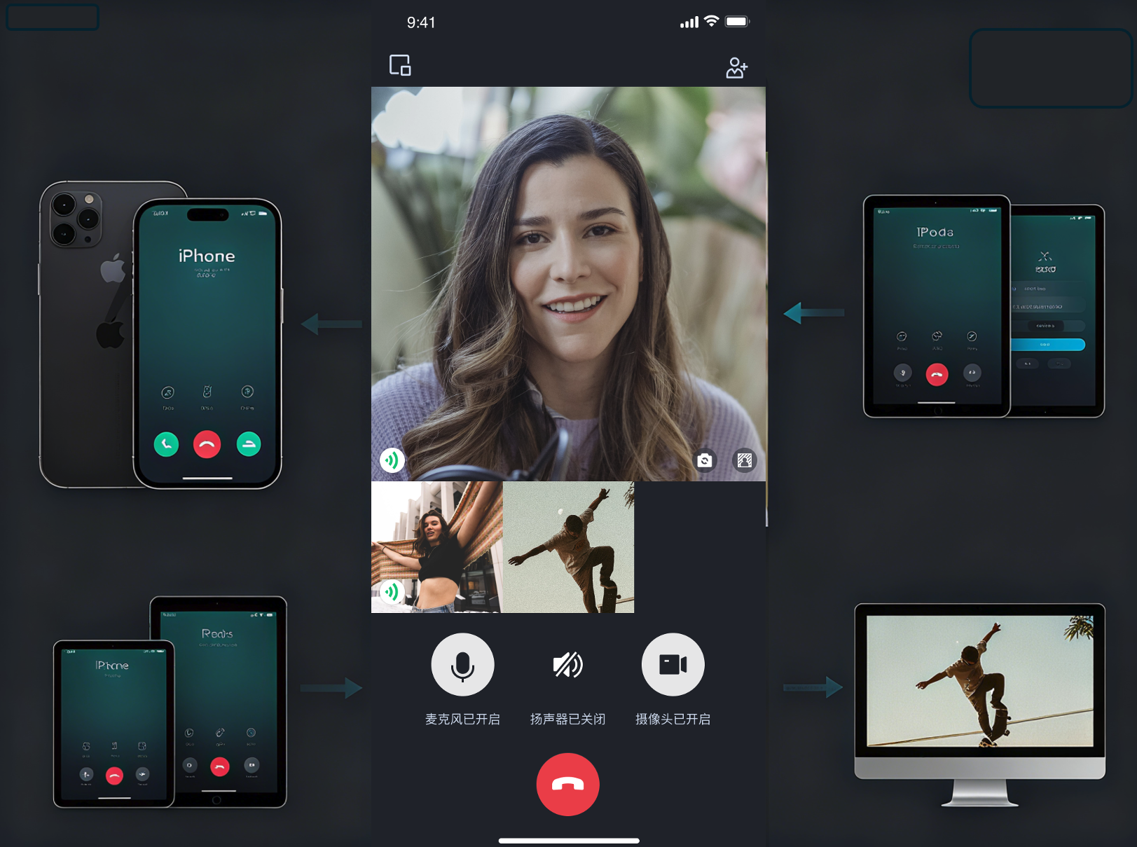 但是在一些办公场景、医疗场景等,用户需要在手机和电脑之间无缝切换,随时随地进行聊天、通话等,基于此我们推出了多设备登录功能,开启后,您的用户可以使用同一个 UserID 同时登录多个客户端(例如,一部 iPhone、一台 iPad 和一台 Windows PC),当收到来电时,所有登录的设备都会同时收到来电邀请并响起铃声,用户在任意一台设备上接听后,其他设备上的来电界面会自动消失,通话将在接听设备上建立。